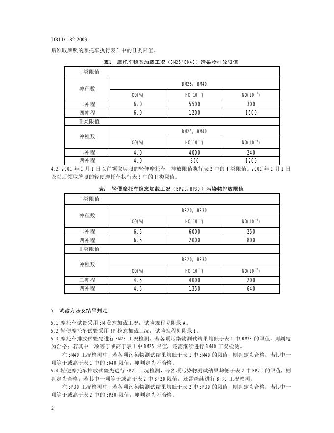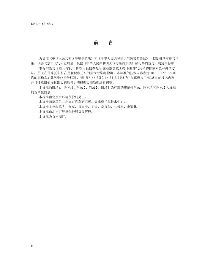 DB11/ 182-2003 摩托车、轻便摩托车稳态加载排气污染物排放限值及测量方法