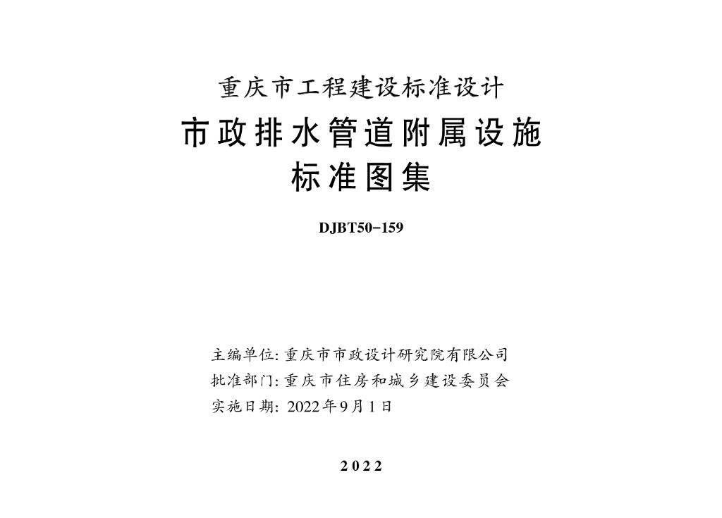 - 10渝22TS02 市政排水管道附属设施标准图集(DJBT50-159)