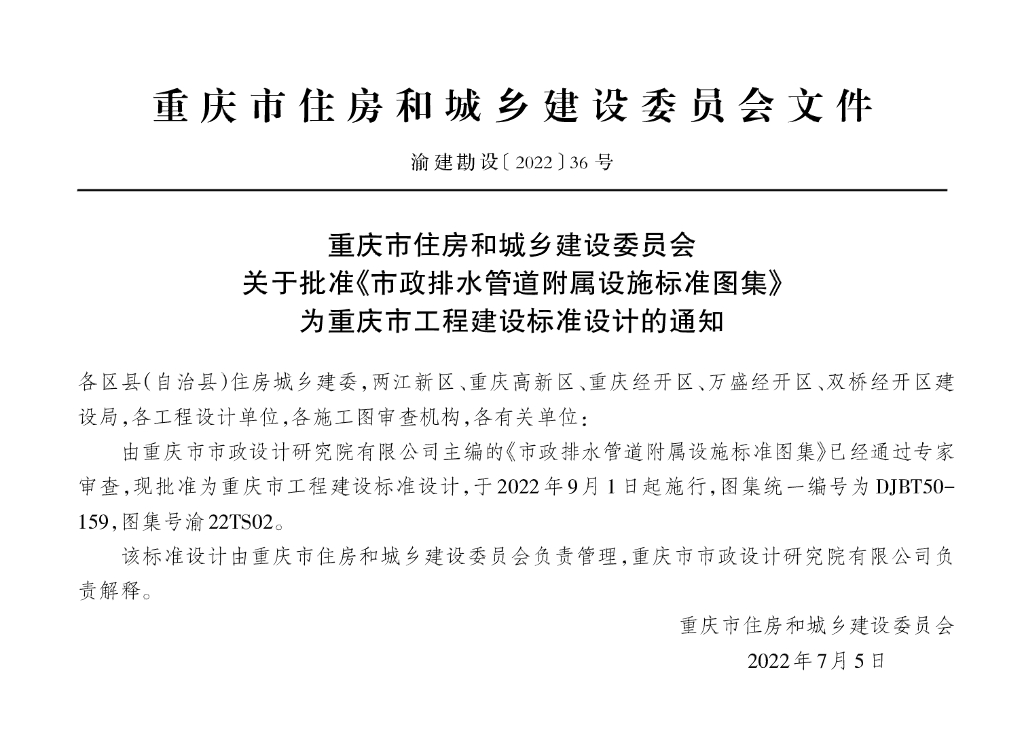 渝22TS02 市政排水管道附属设施标准图集(DJBT50-159)
