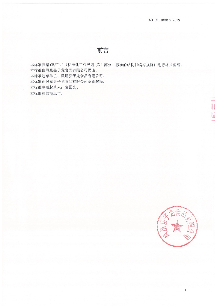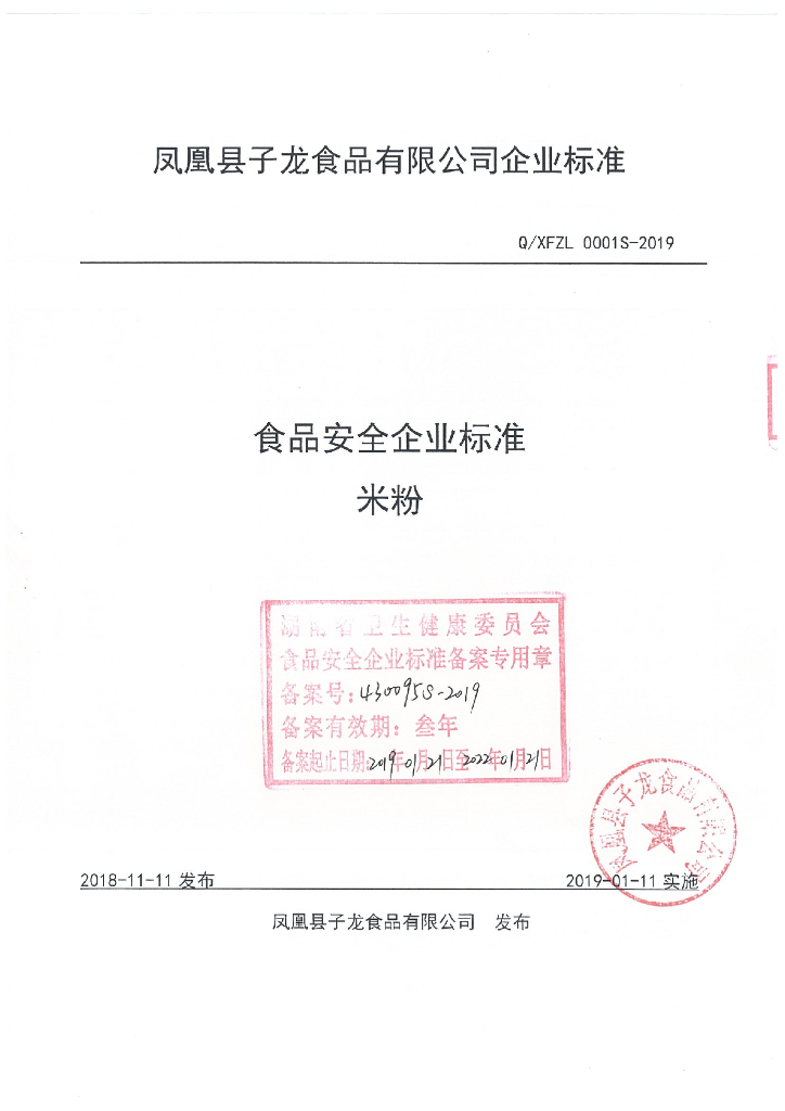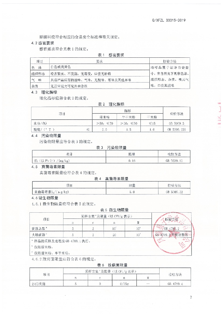 Q/XFZL 0001S-2019 米粉