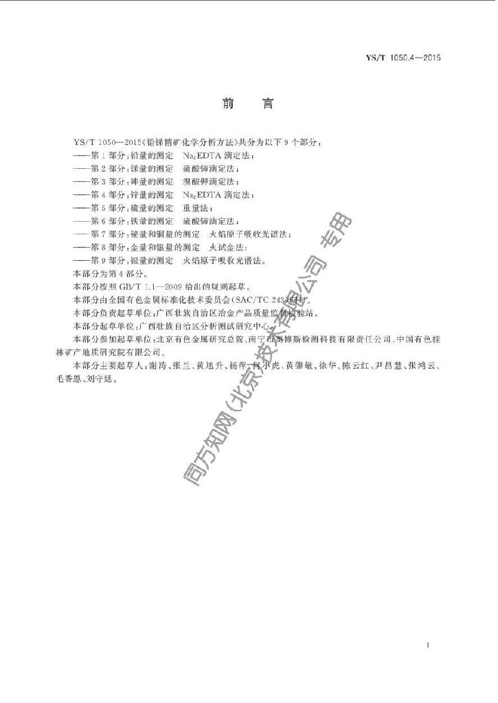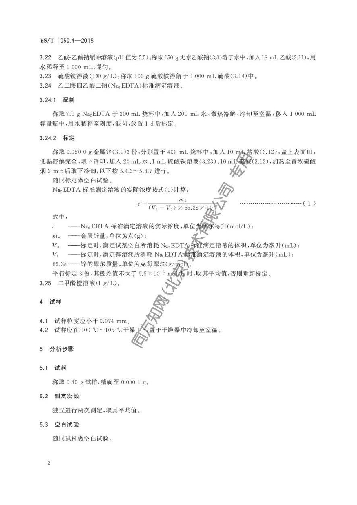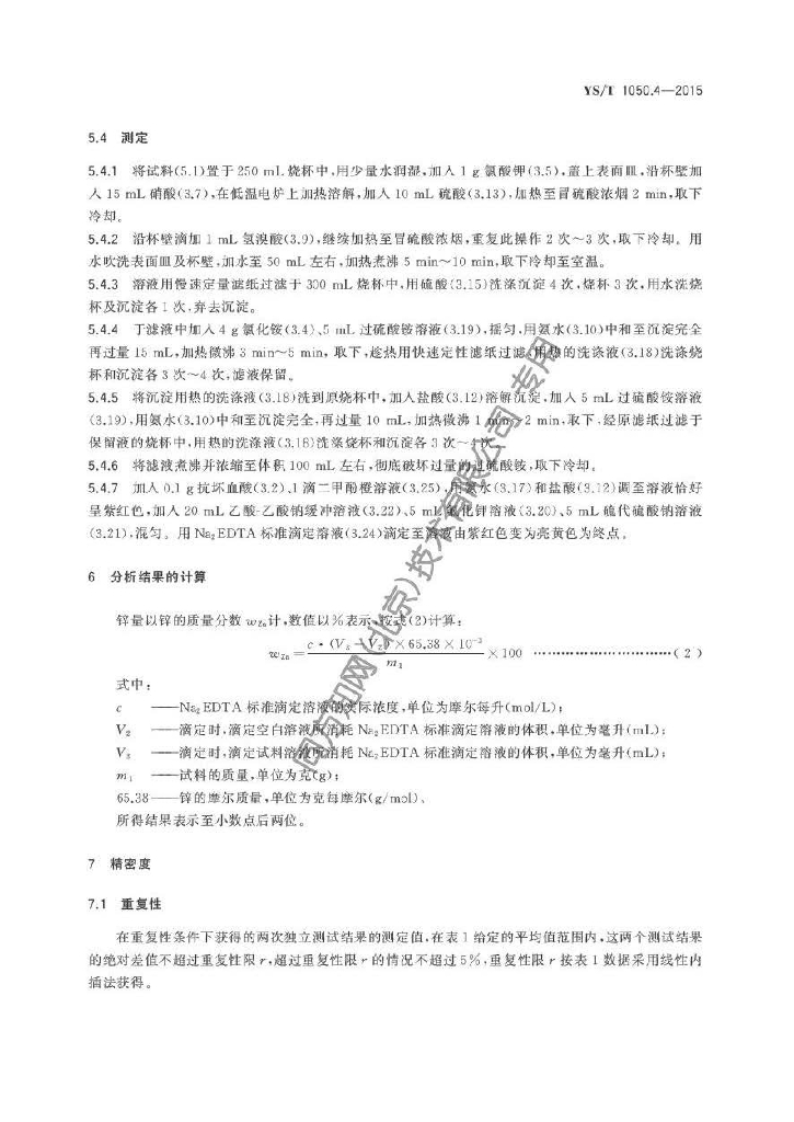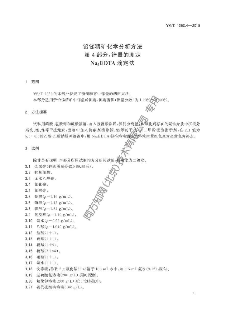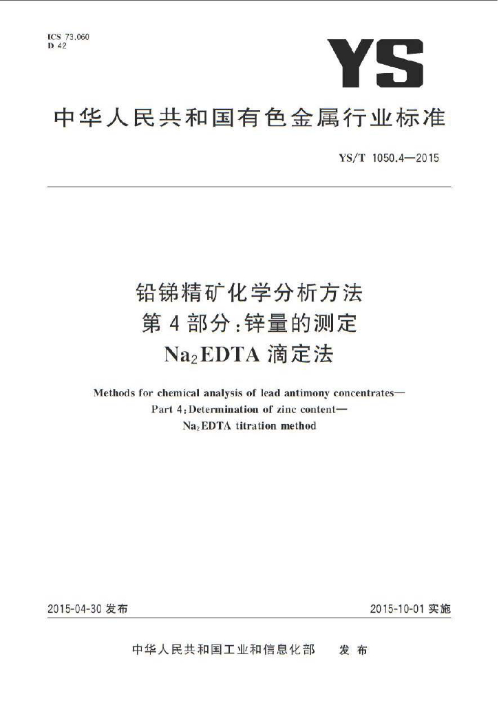 YS/T 1050.4-2015 铅锑精矿化学分析方法 第4部分:锌量的测定 Na2EDTA滴定法