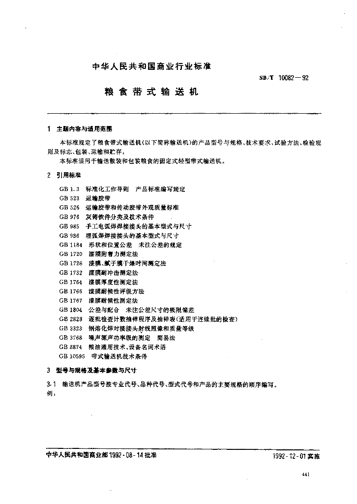 SB/T 10082-1992 粮食带式输送机(LS/T 3515-1992)