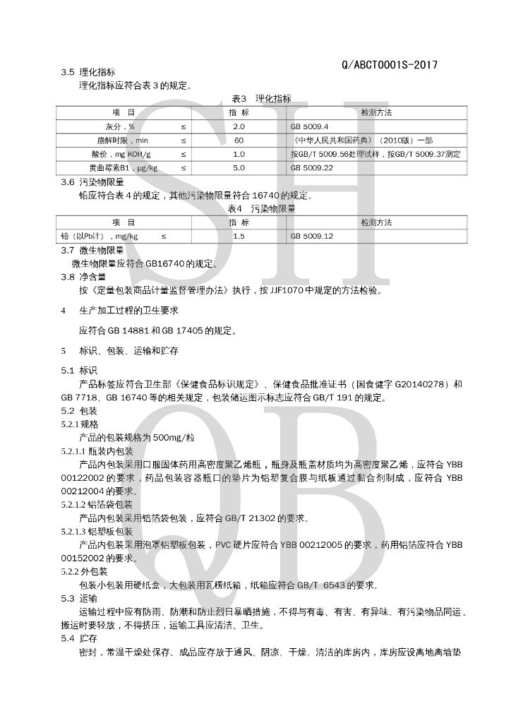 Q/ABCT 0001S-2017 诺金康牌辅酶Q10软胶囊