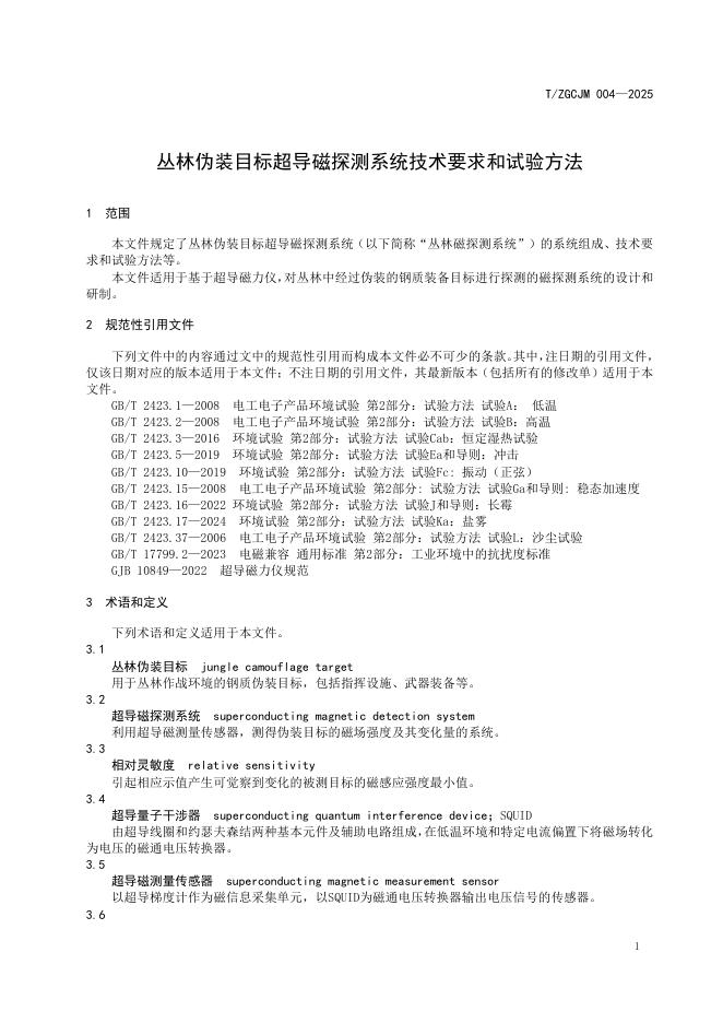 T/ZGCJM 004-2025 丛林伪装目标超导磁探测系统技术要求和试验方法