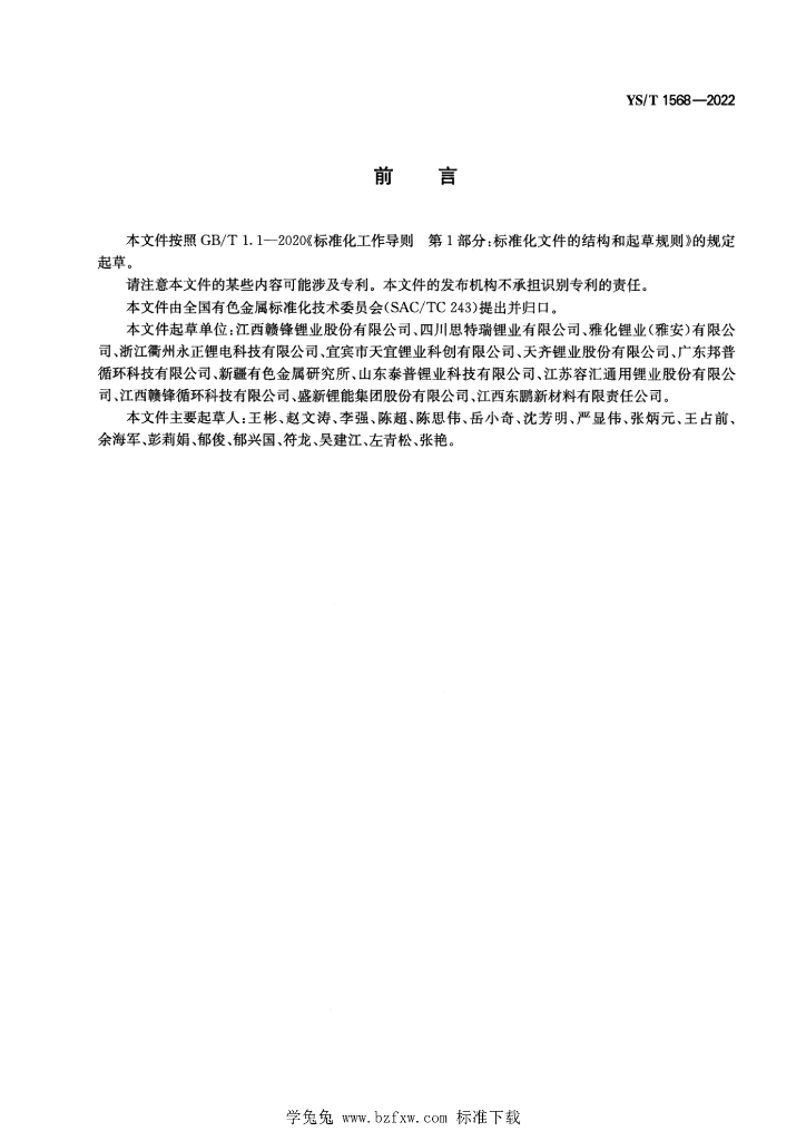 江西赣锋锂业股份有限公司、四川思特瑞锂业有限公司、雅化锂业(雅安)有限公司、浙江衢州永正锂电科技有限公司、宜宾市天宜锂业科创有限公司、天齐锂业股份有限公司、广东邦普循环科技有限公司、新疆有色金属研究所、山东泰普锂业科技有限公司、江苏容汇通用锂业股份有限公司、江西赣锋循环科技有限公司、盛新锂能集团股份有限公司、江西东鹏新材料有限责任公司