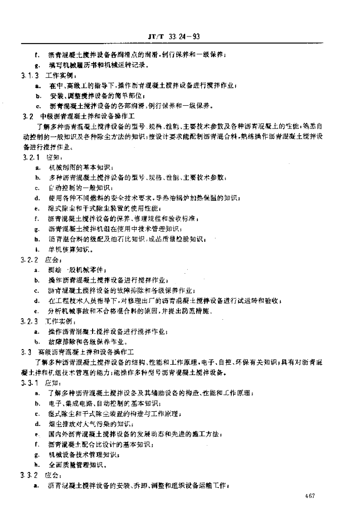 JT/T 33.24-1993 交通行业工人技术等级标准公路工程与航务工程沥青 混凝土拌和设备操作工