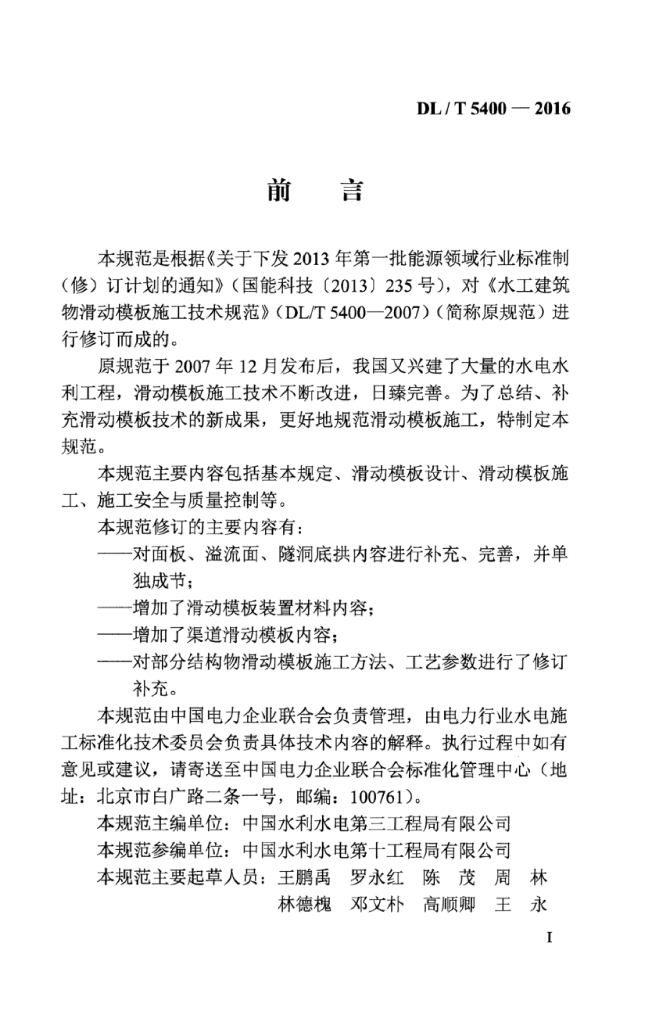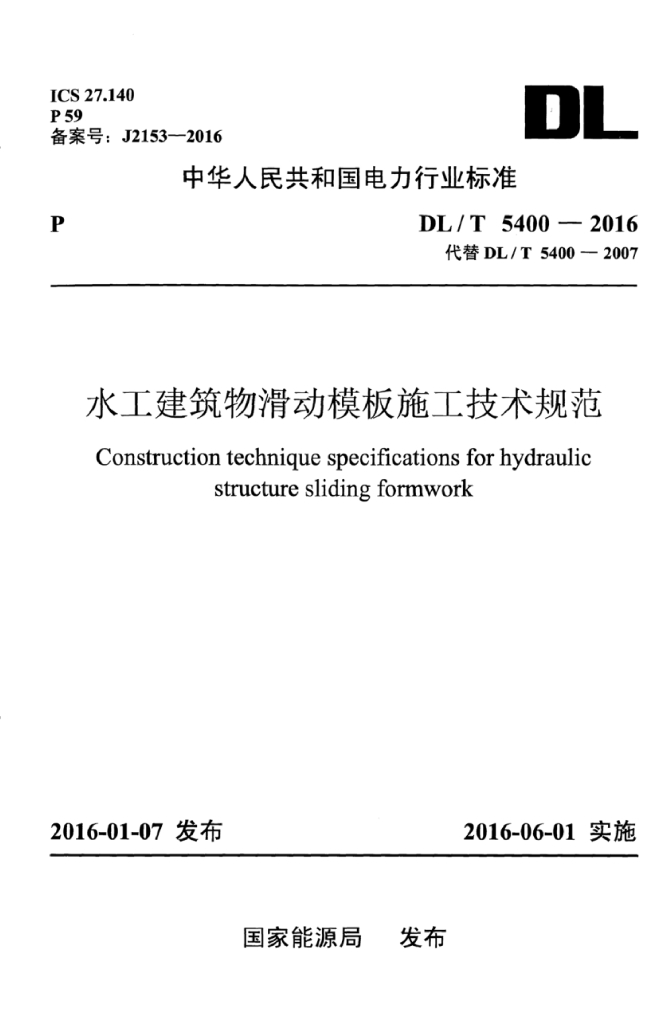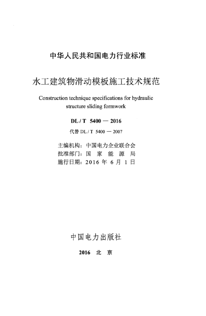 DL/T 5400-2016 水工建筑物滑动模板施工技术规范