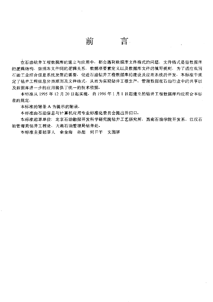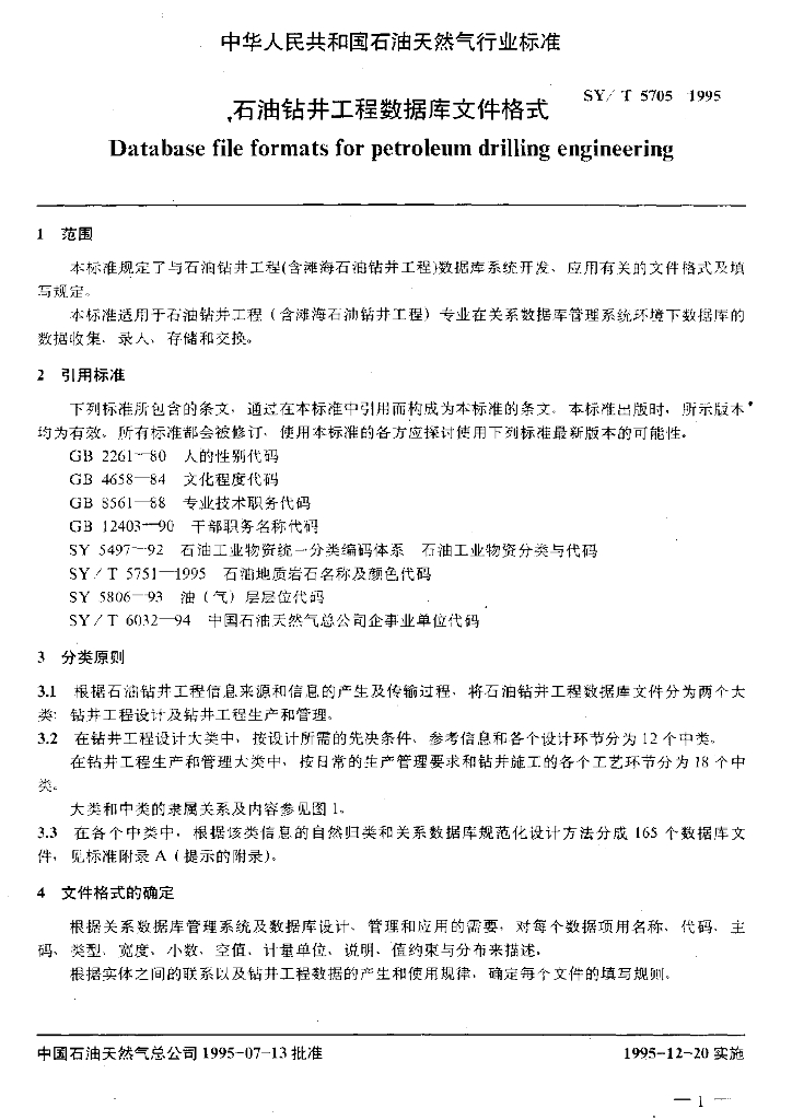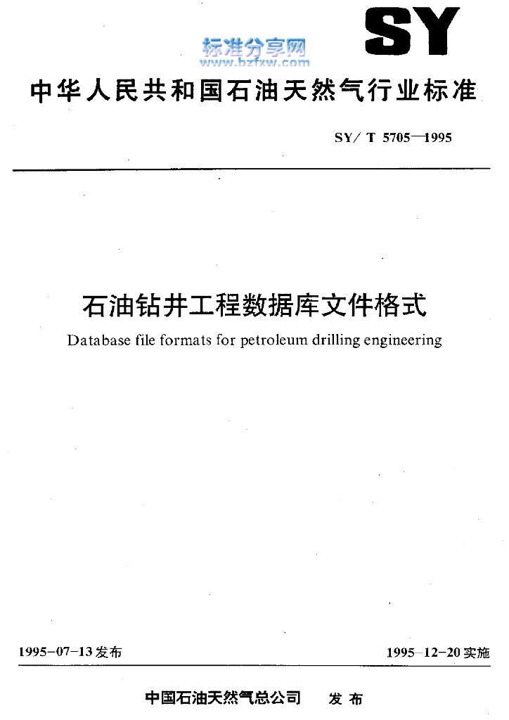 SY/T 5705-1995 石油钻井工程数据库文件格式