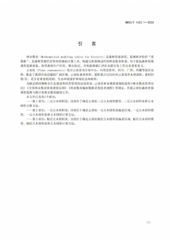 DB53/T 1422.1-2025 云南松森林资源调查监测与碳计量林业数表 第1部分:二元立木材积表
