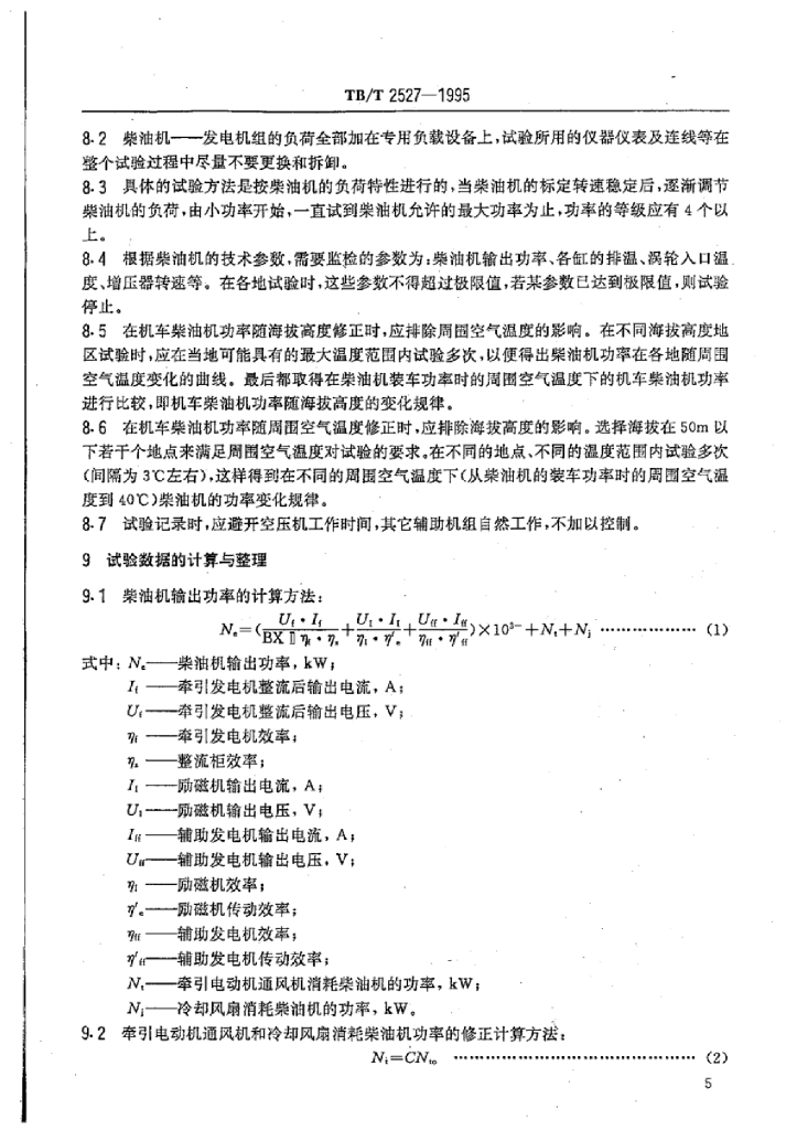 TB/T 2527-1995 内燃机车功率随大气条件变化的试验方法