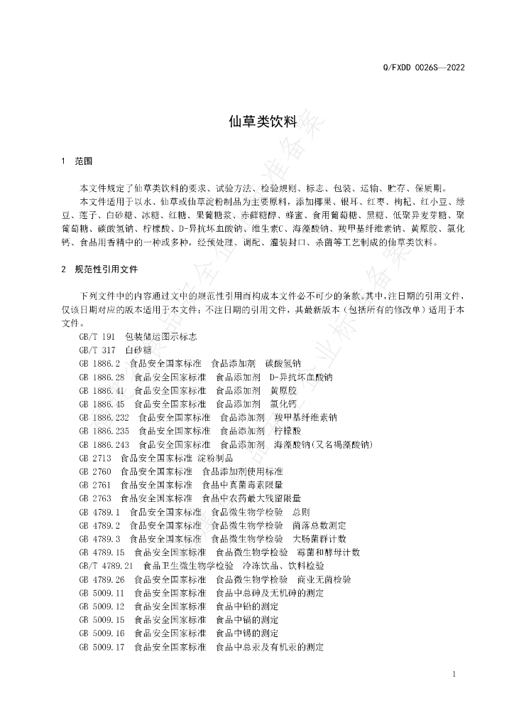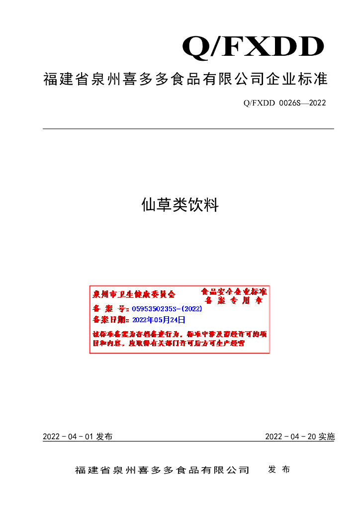 Q/FXDD 0026S-2022 仙草类饮料