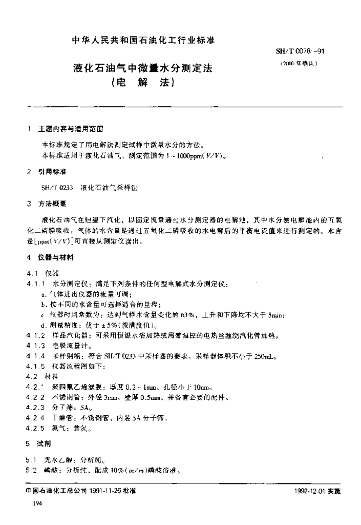 SH/T 0078-1991 液化石油气中微量水分测定法(电解法)