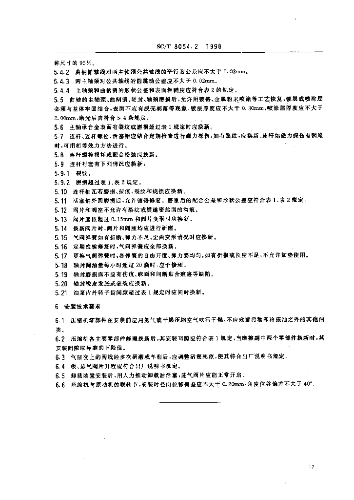 SC/T 8054.2-1998 渔船制冷系统修理技术要求 10系列船用活塞式压缩机修理