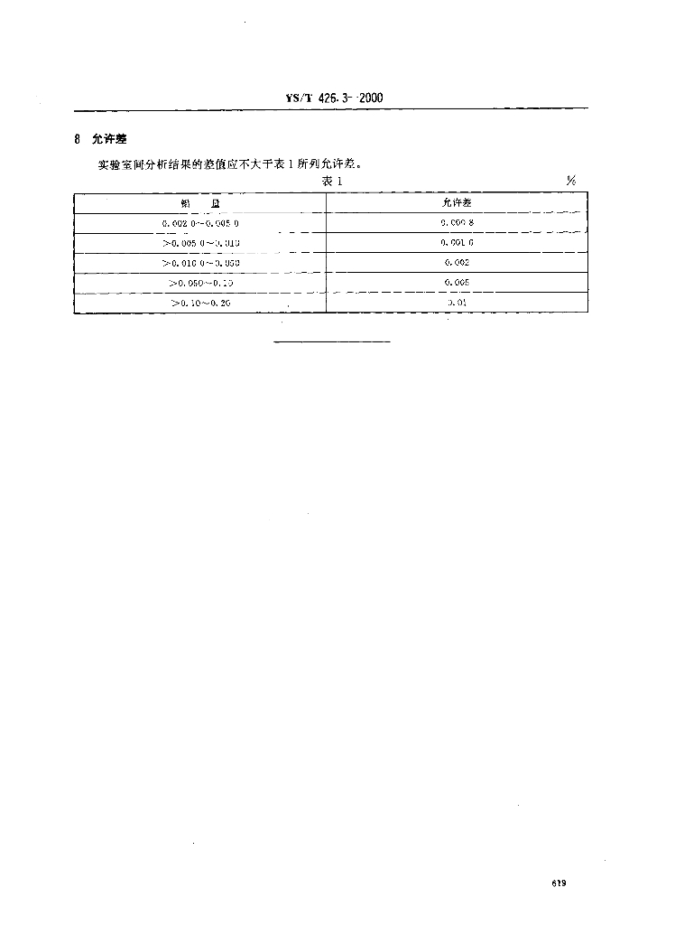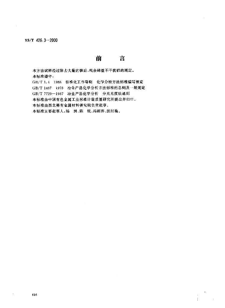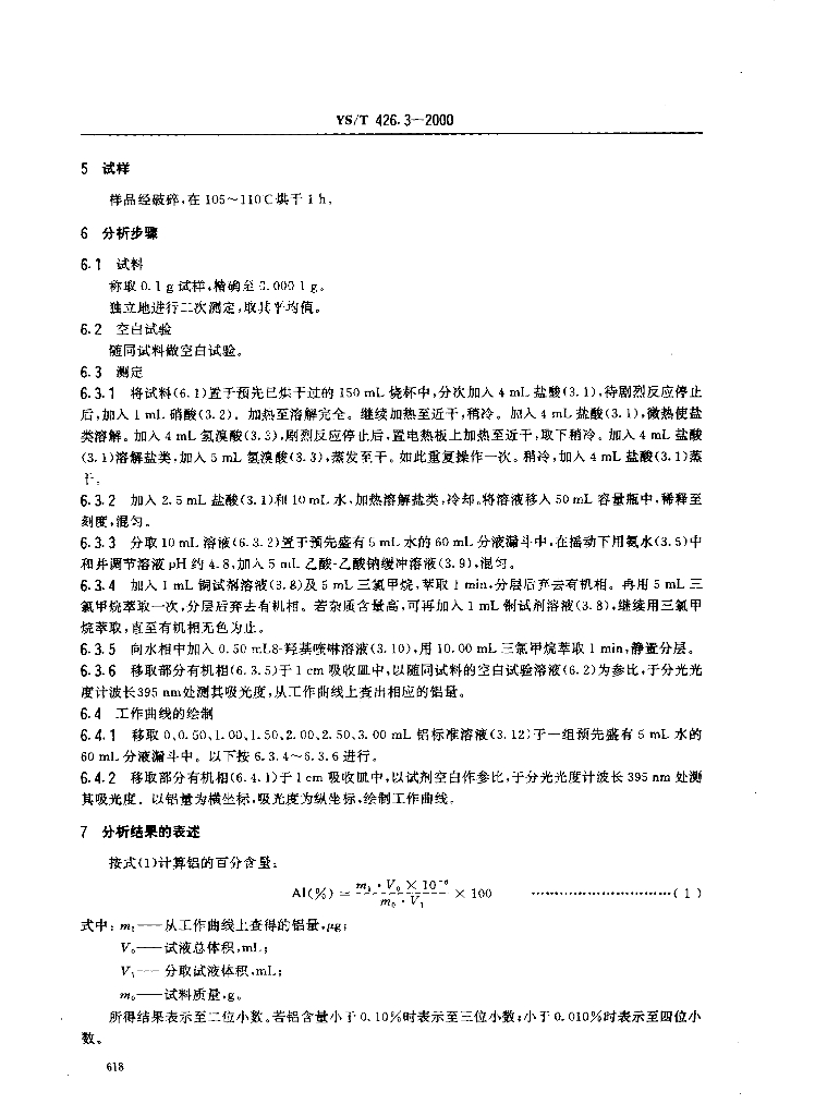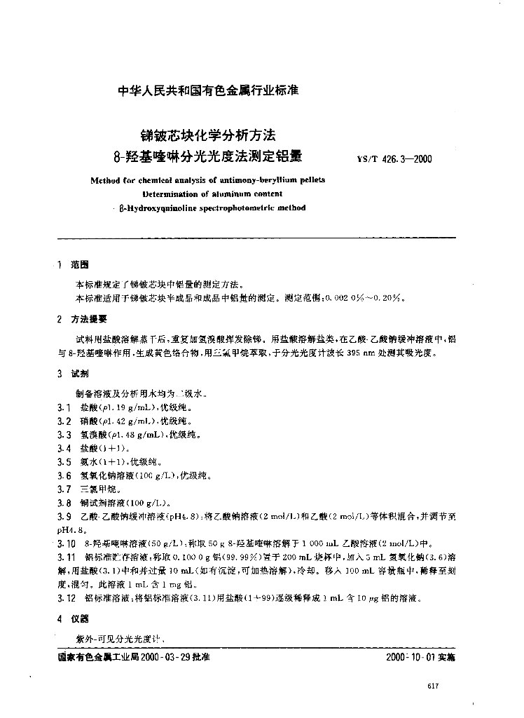 YS/T 426.3-2000 锑铍芯块化学分析方法8-羟基喹啉分光光度法测定铝量