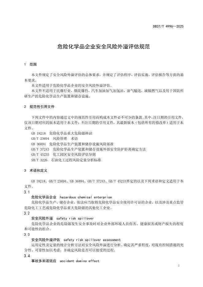 DB37/T 4996-2025 危险化学品企业安全风险外溢评估规范
