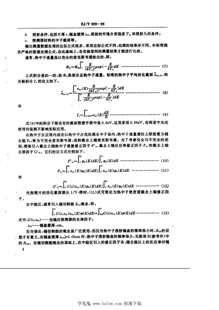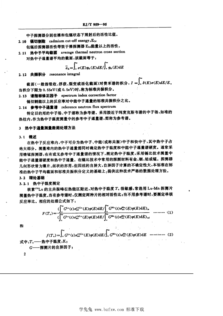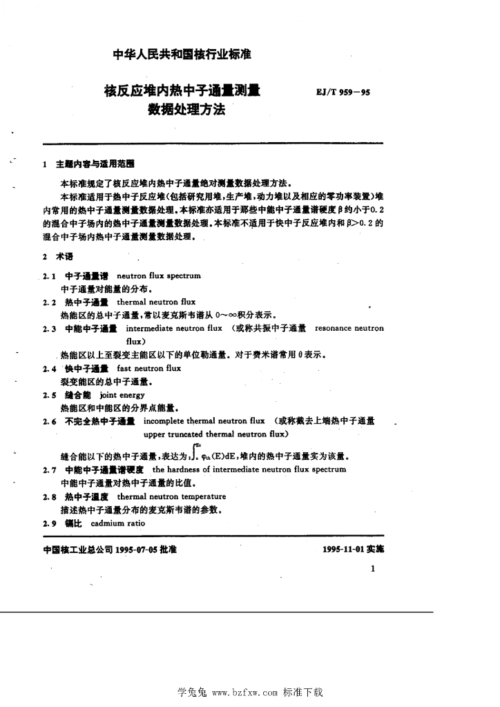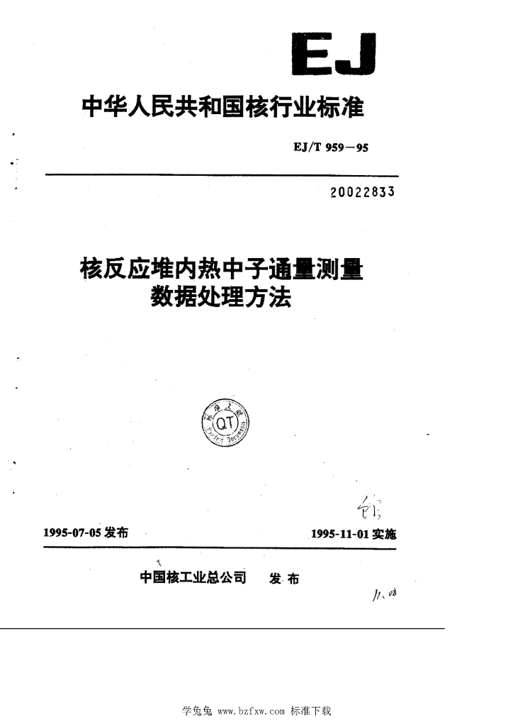 EJ/T 959-1995 核反应堆内热中心通量测量 数据处理方法