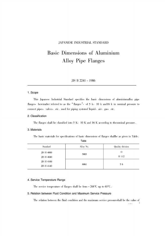 JIS B2241-1986 英文版 铝合金管法兰基本尺寸