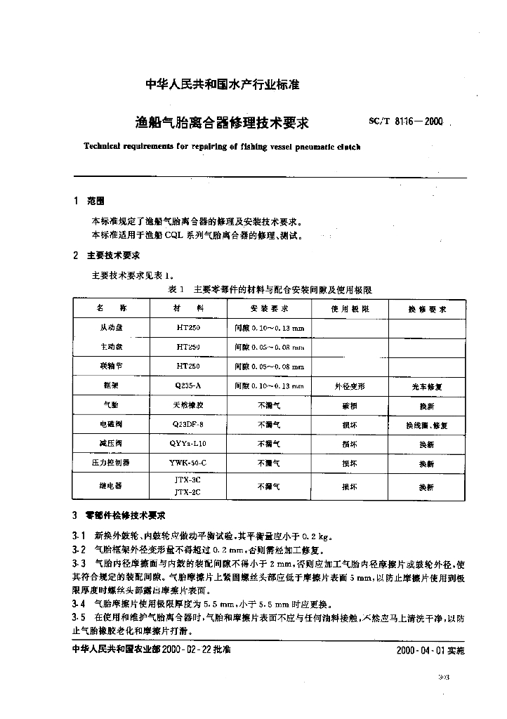 SC/T 8116-2000 渔船气胎离合器修理技术要求