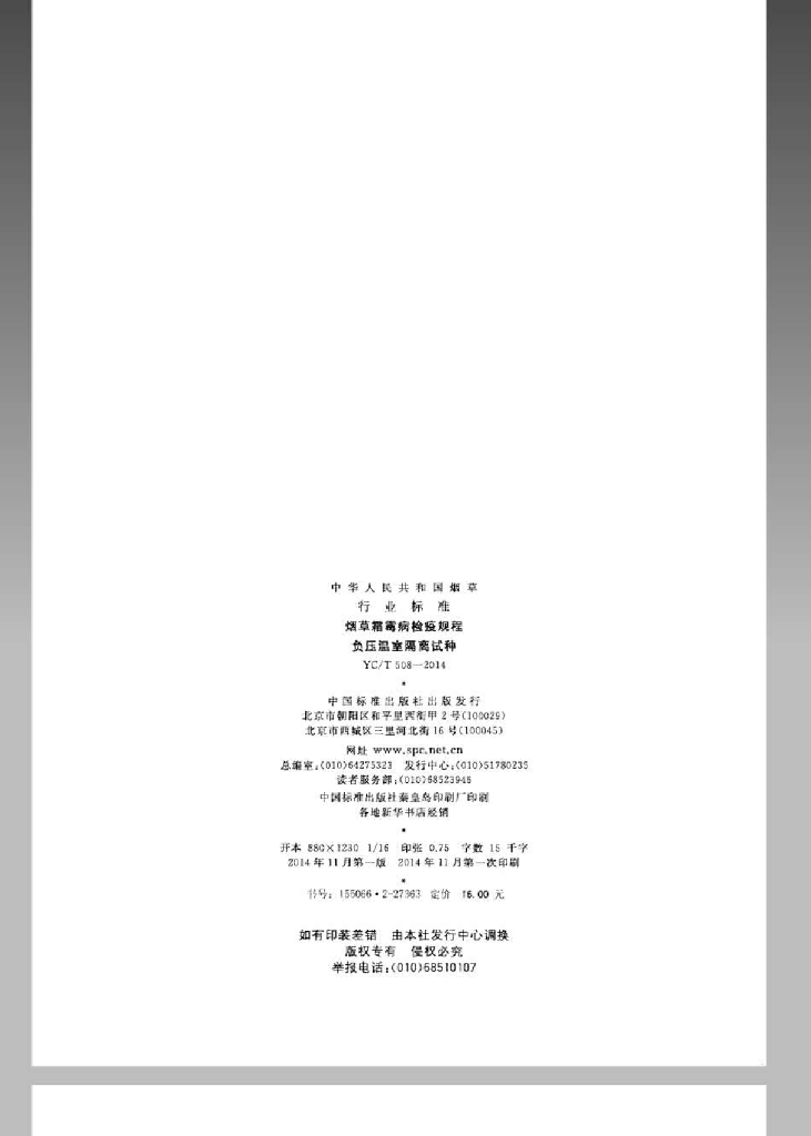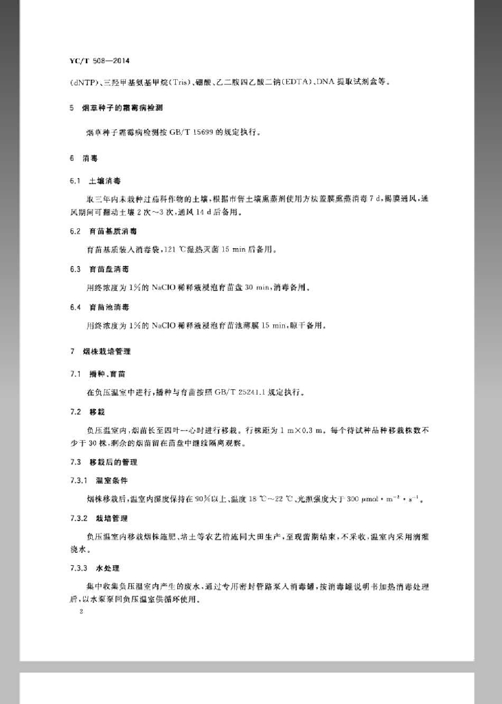 YC/T 508-2014 烟草霜霉病检疫规程 负压温室隔离试种