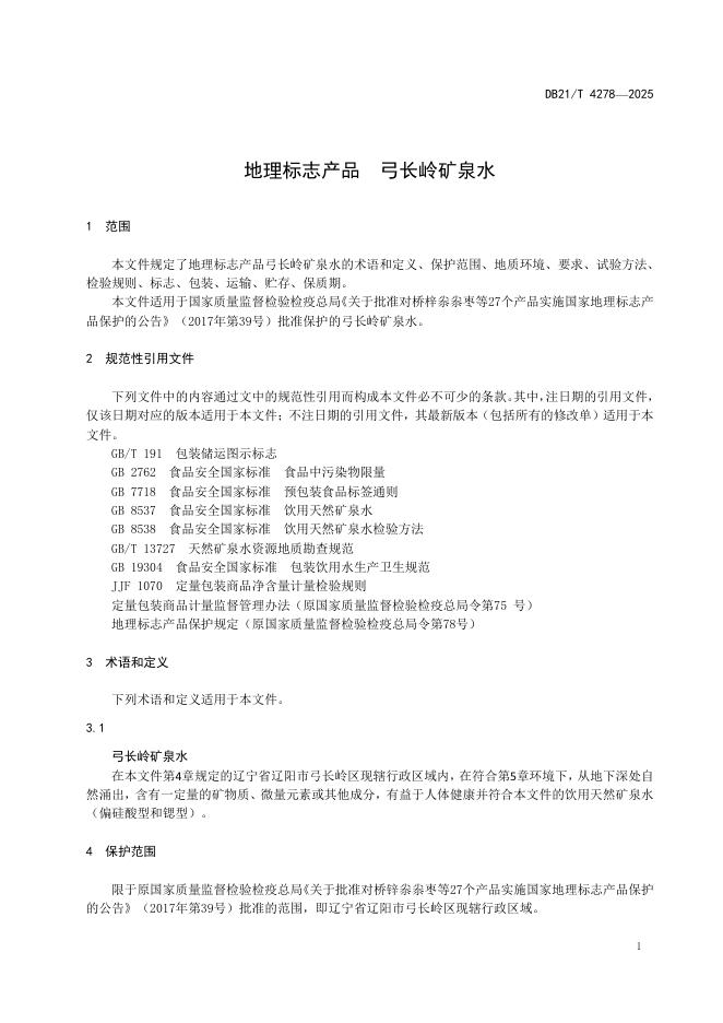 DB21/T 4278-2025 地理标志产品 弓长岭矿泉水