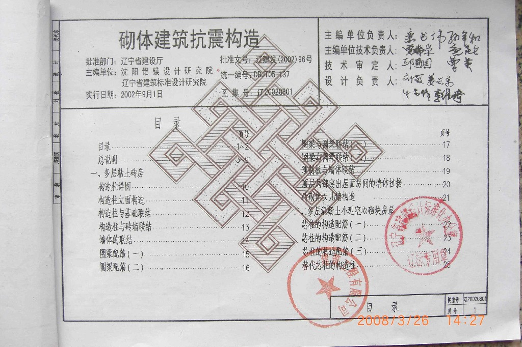 辽2002G801 砌体建筑抗震构造图集