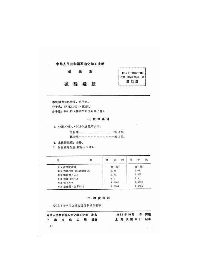 HG 3-968-1976 化学试剂 硫酸羟胺