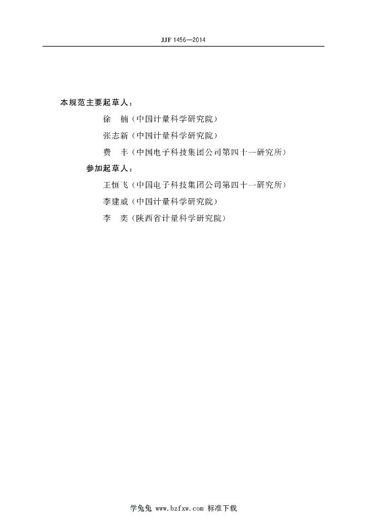 徐楠(中国计量科学研究院)、张志新(中国计量科学研究院)、费丰(中国电子科技集团公司第四十一研究所)、王恒飞(中国电子科技集团公司第四十一研究所)、李建威(中国计量科学研究院)、李奕(陕西省计量科学研究院)