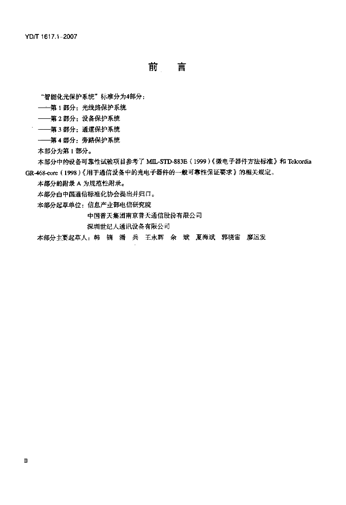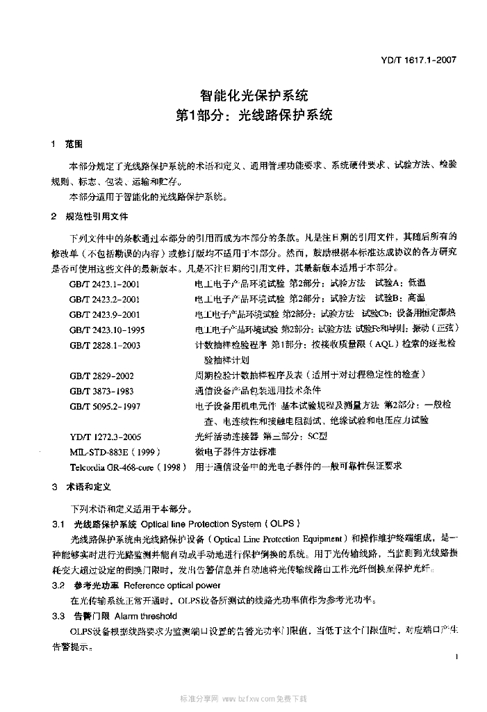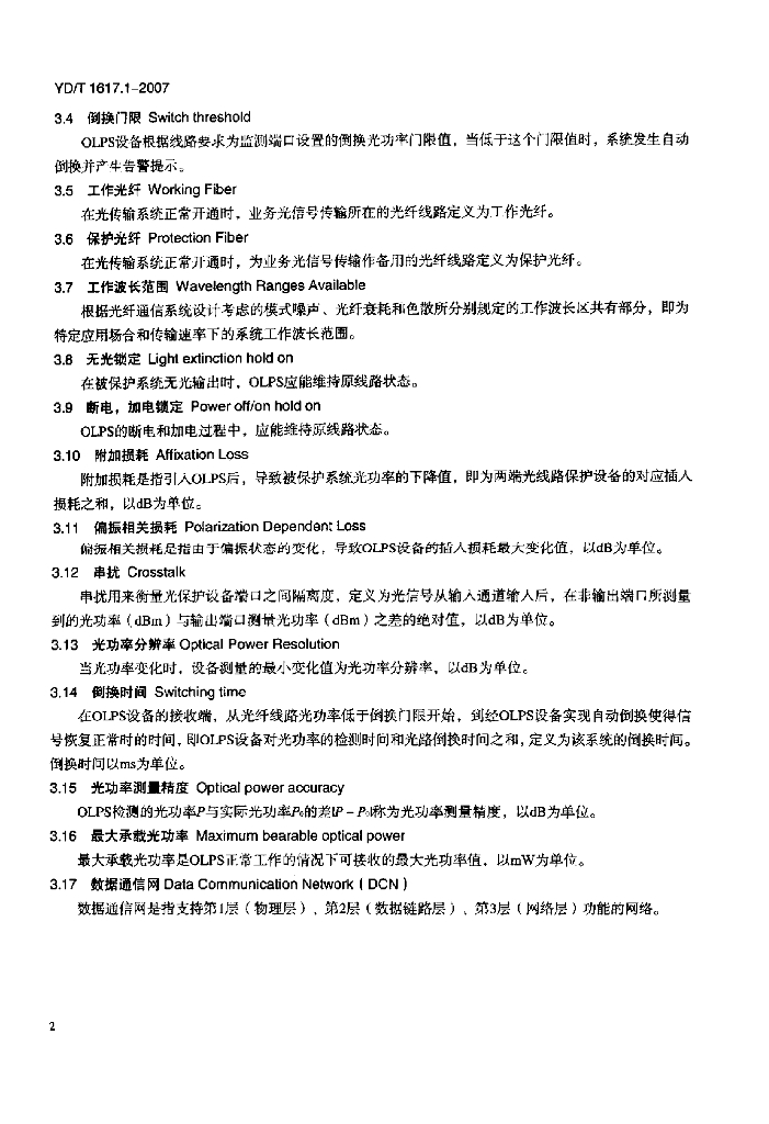 YD/T 1617.1-2007 智能化光保护系统 第1部分:光线路保护系统
