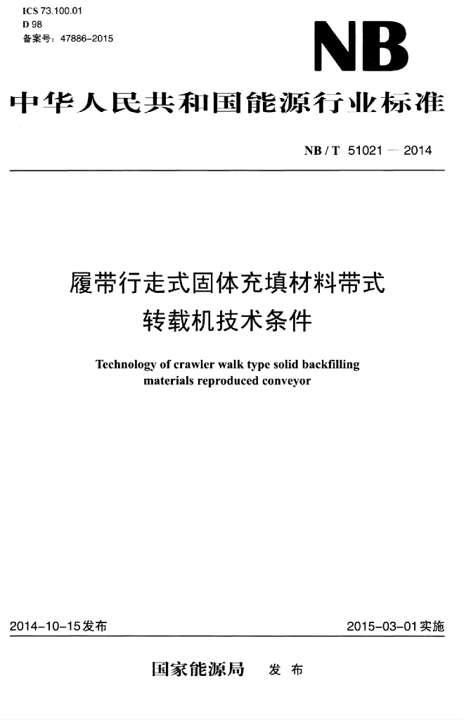 NB/T 51021-2014 履带行走式固体充填材料带式转载机技术条件