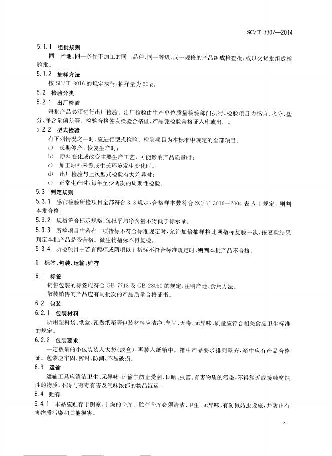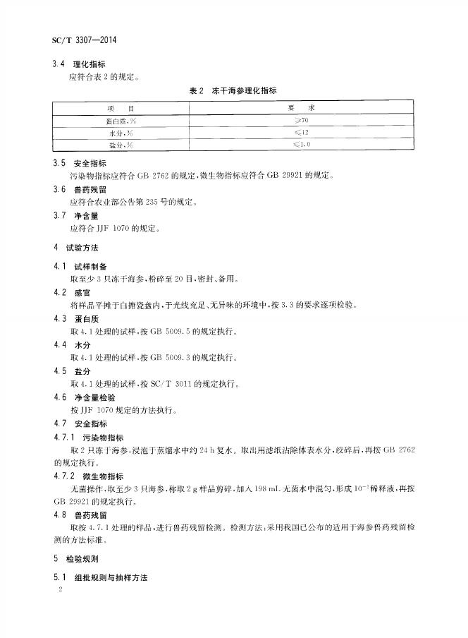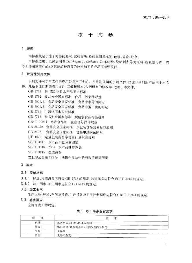 SC/T 3307-2014 冻干海参