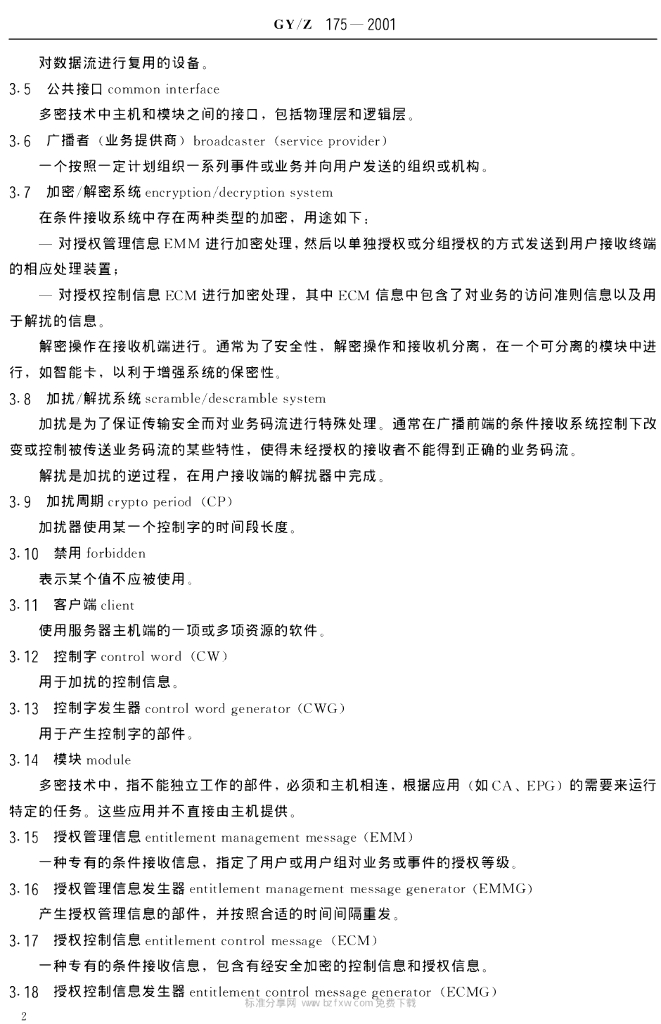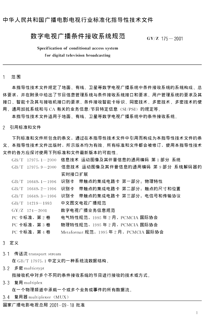 GY/Z 175-2001 数字电视广播条件接收系统规范