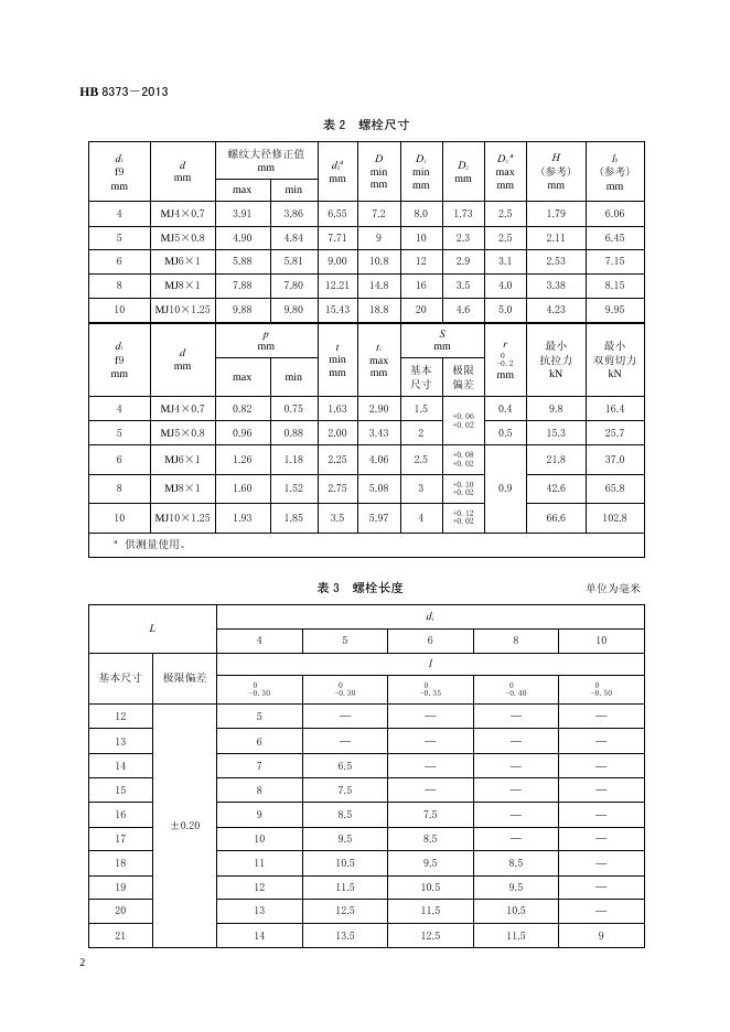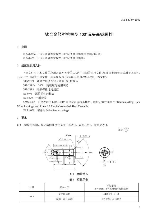 HB 8373-2013(2017) 钛合金轻型抗拉型100°沉头高锁螺栓