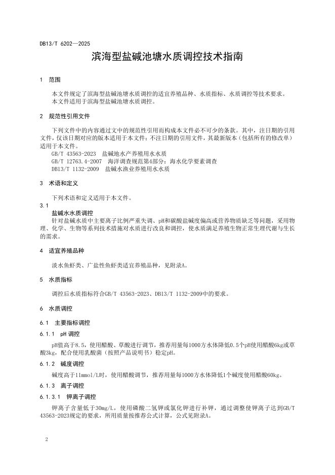DB13/T 6202-2025 滨海型盐碱池塘水质调控技术指南