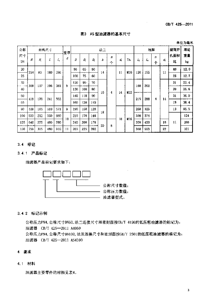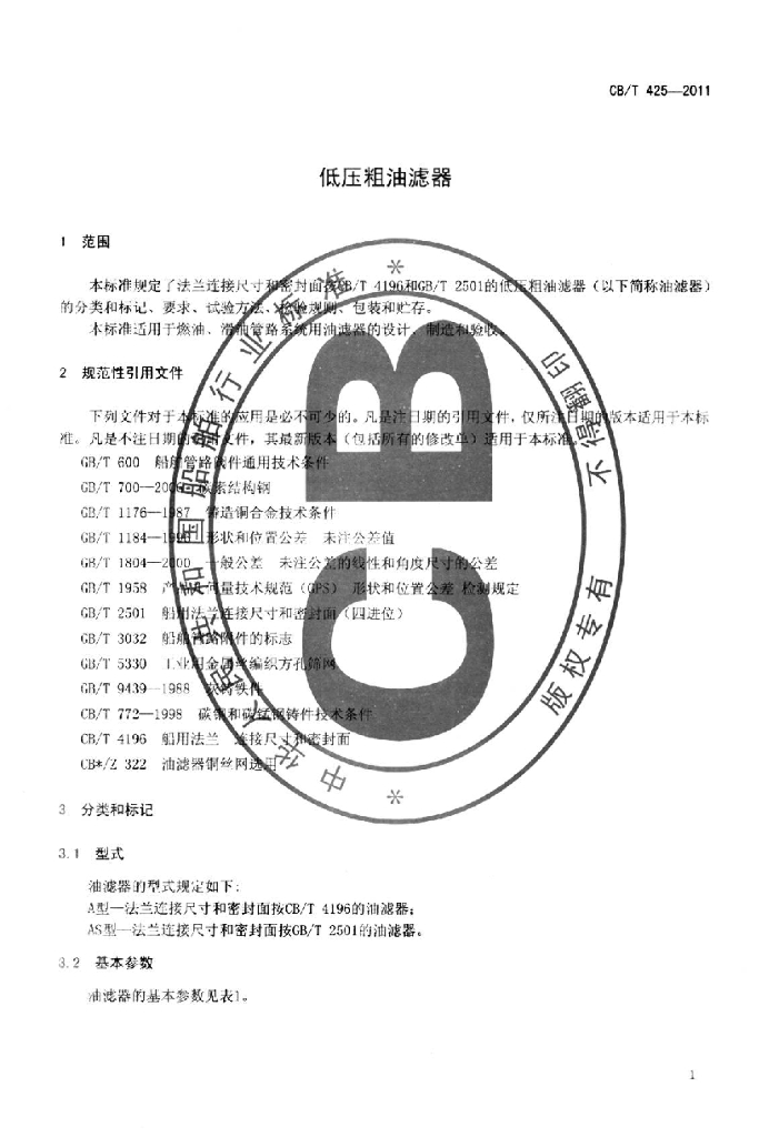 CB/T 425-2011 低压粗油滤器