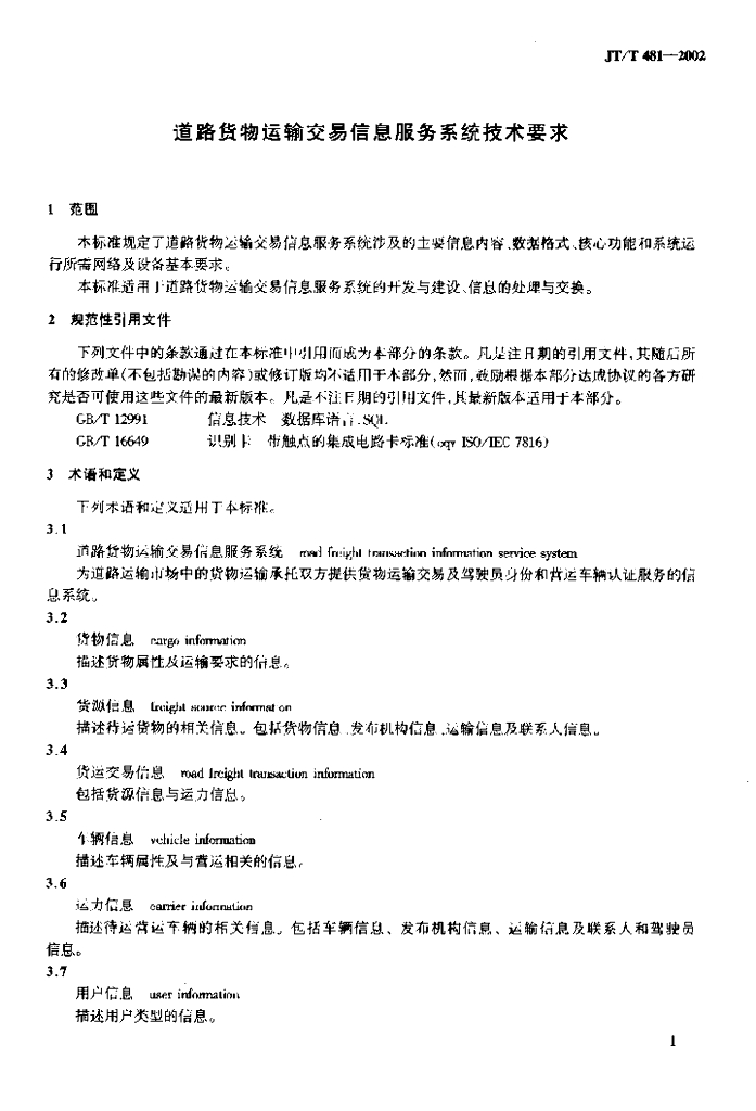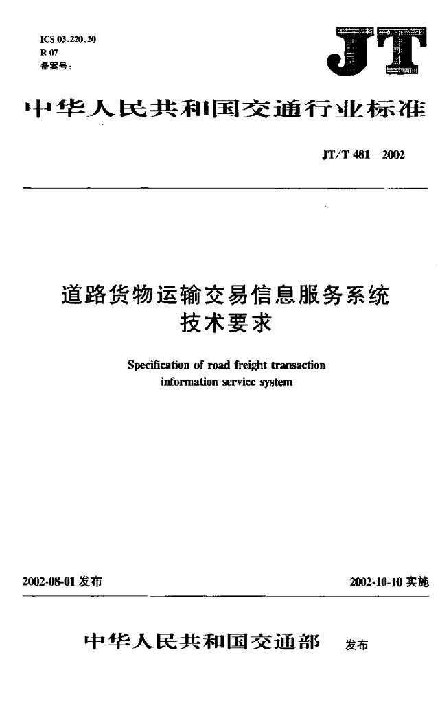 JT/T 481-2002 道路货物运输交易信息服务系统技术要求
