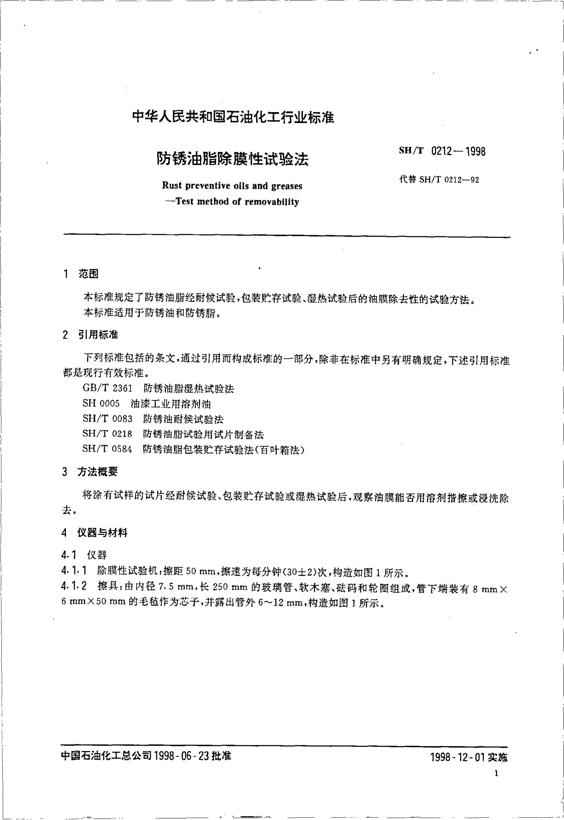 SH/T 0212-1992 防锈油脂除膜性试验法