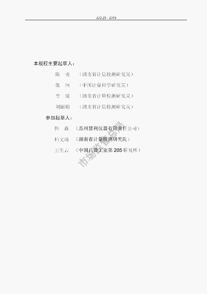 陈勇(湖南省计量检测研究院)、张恒(中国计量科学研究院)、曾琰(湖南省计量检测研究院)、刘丽娟(湖南省计量检测研究院)、韩森(苏州慧利仪器有限责任公司)、柏文琦(湖南省计量检测研究院)、王生云(中国兵器工业第205研究所)