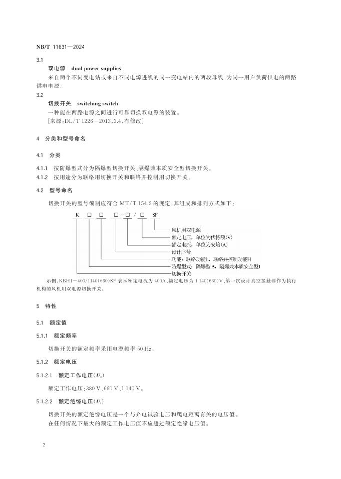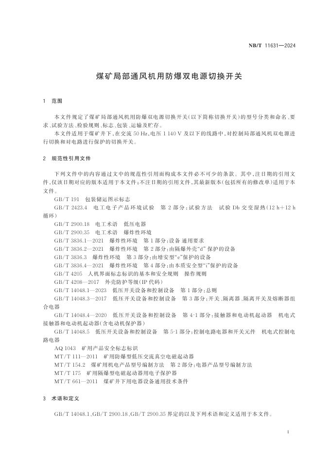 NB/T 11631-2024 煤矿局部通风机用防爆双电源切换开关