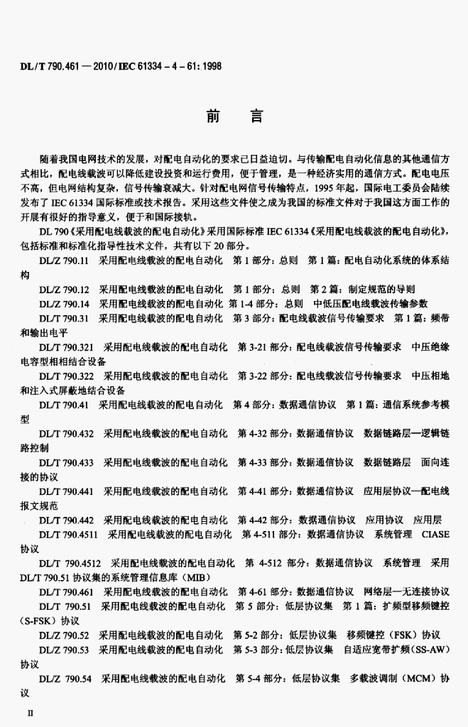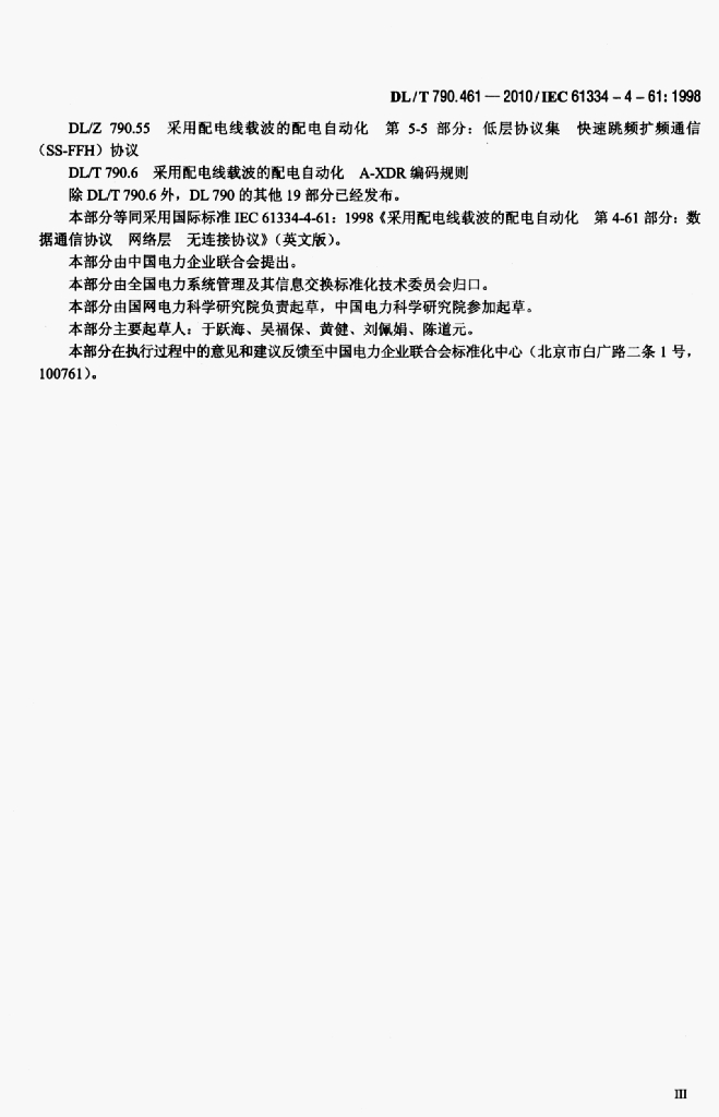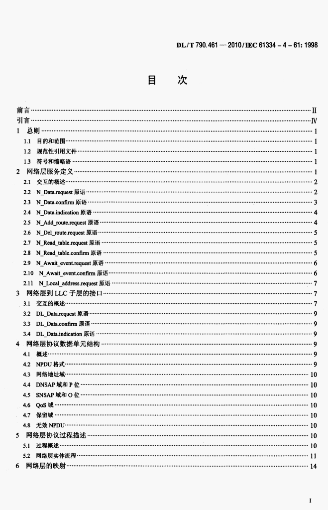 DL/T 790.461-2010 采用配电线载波的配电自动化 第4-61部分:数据通信协议网络层一无连接协议
