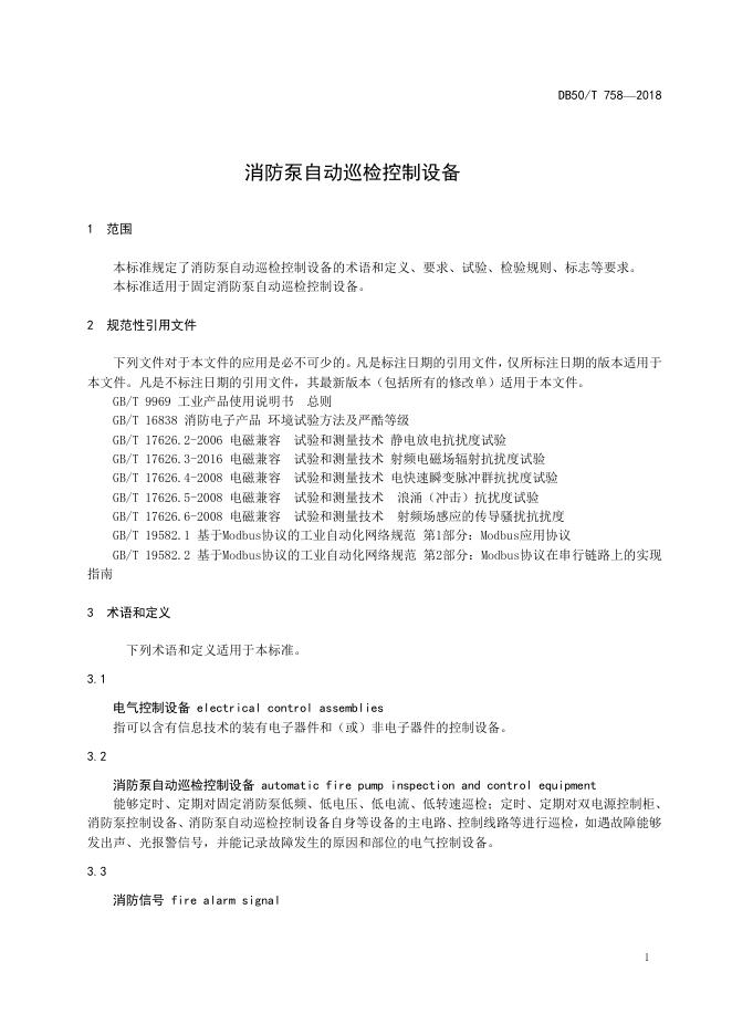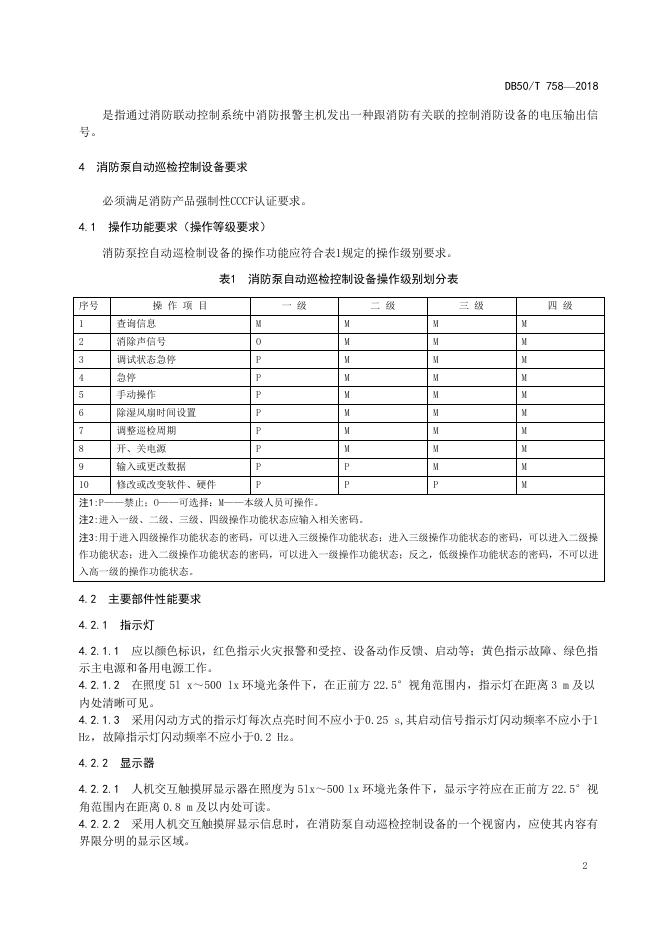 DB50/T 758-2018 消防泵自动巡检控制设备
