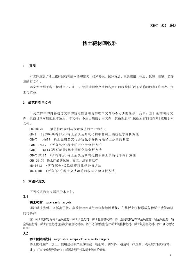 XB/T 522-2023 稀土靶材回收料