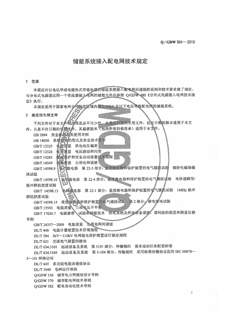 Q/GDW 564-2010 储能系统接入配电网技术规定