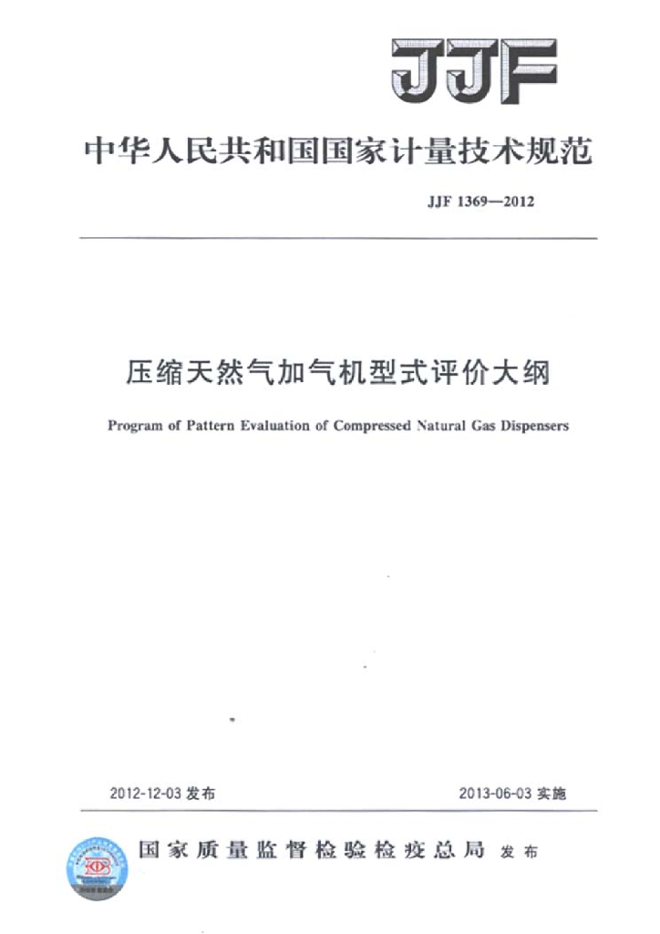 JJF 1369-2012 压缩天然气加气机型式评价大纲