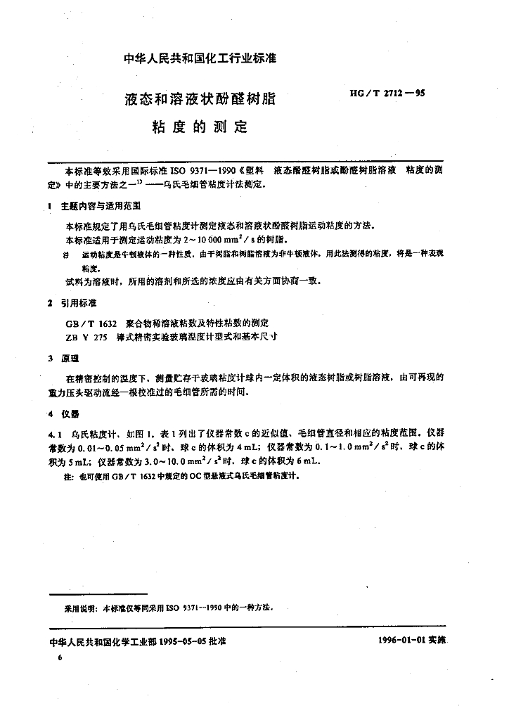 HG/T 2712-1995 液态和溶液状酚醛树脂粘度的测定