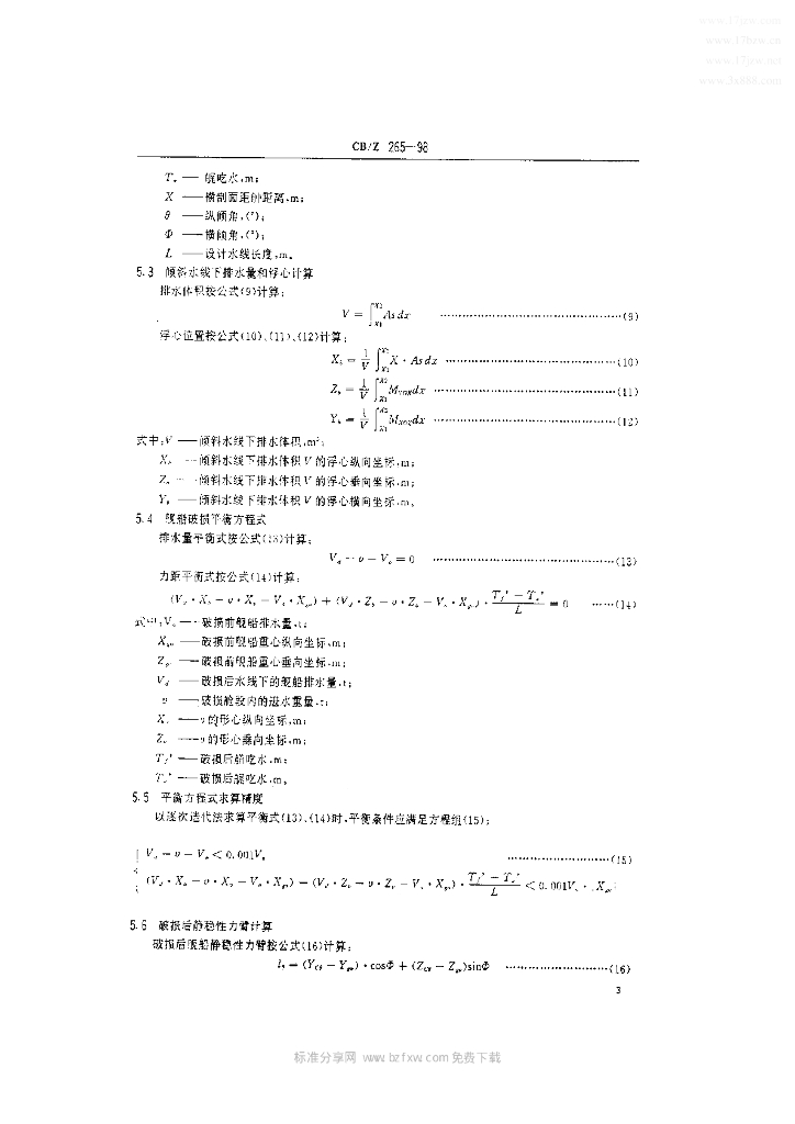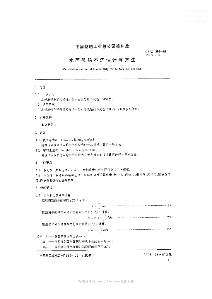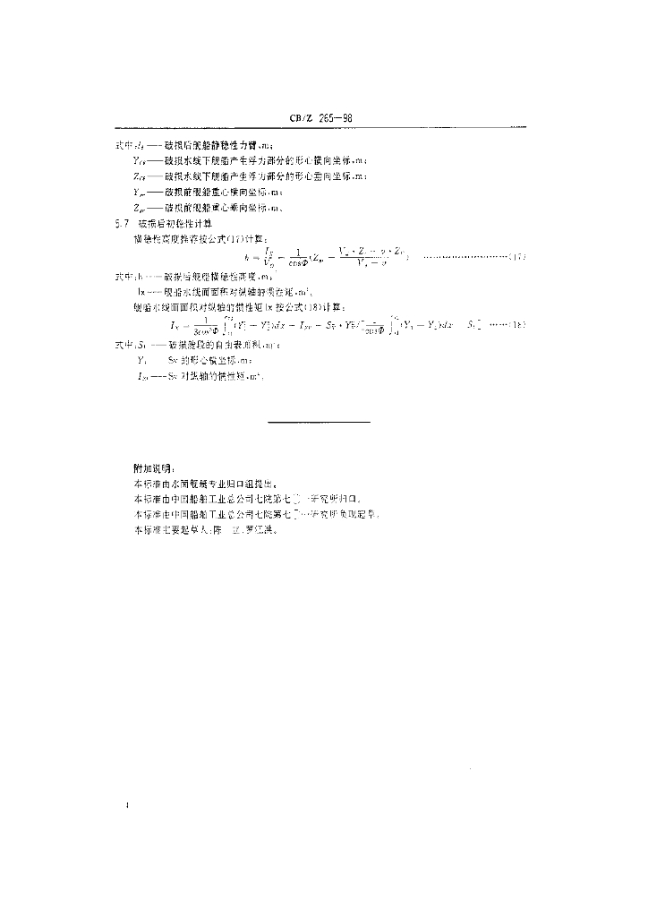 CB/Z 265-1998 水面舰船不沉性计算方法