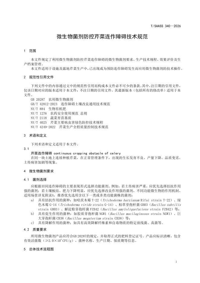 T/SAASS 340-2026 微生物菌剂防控芹菜连作障碍技术规范