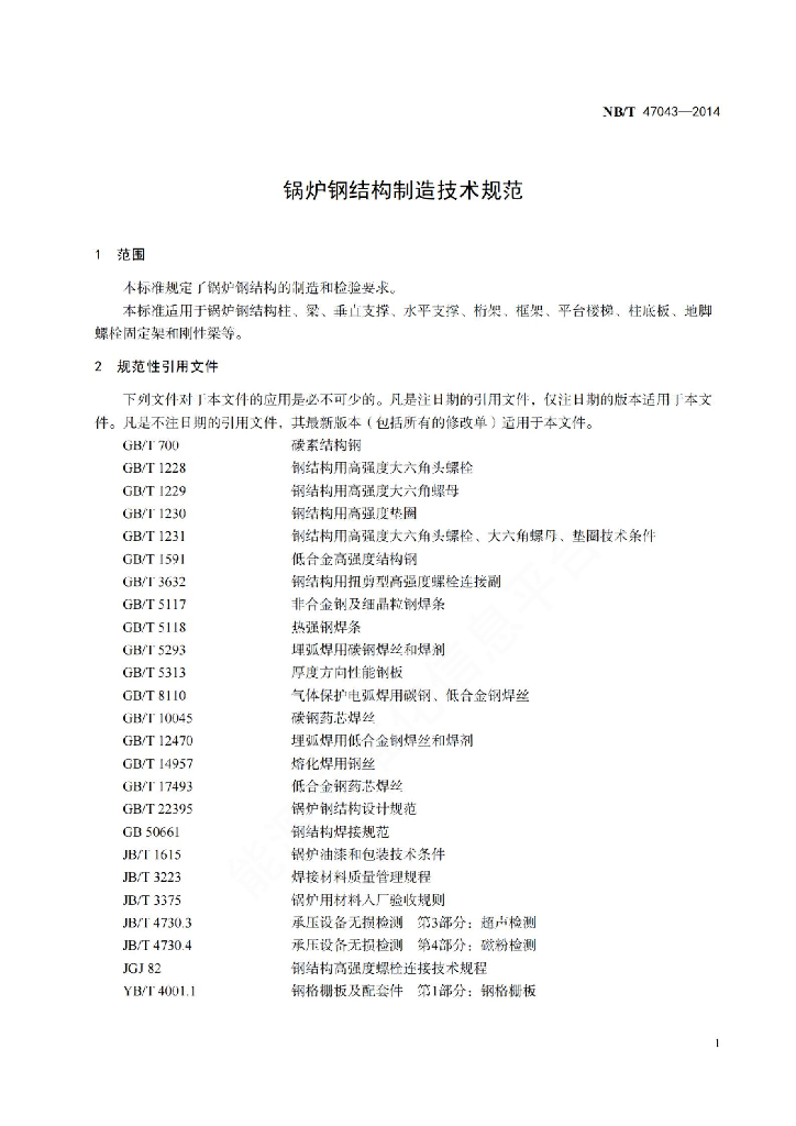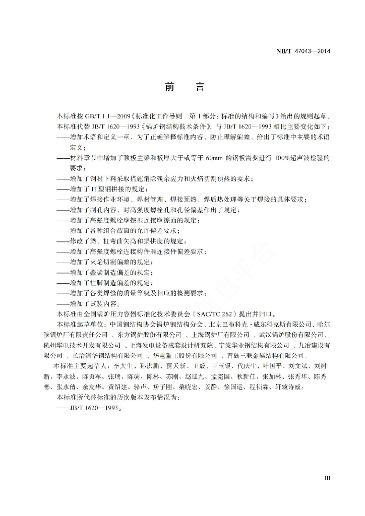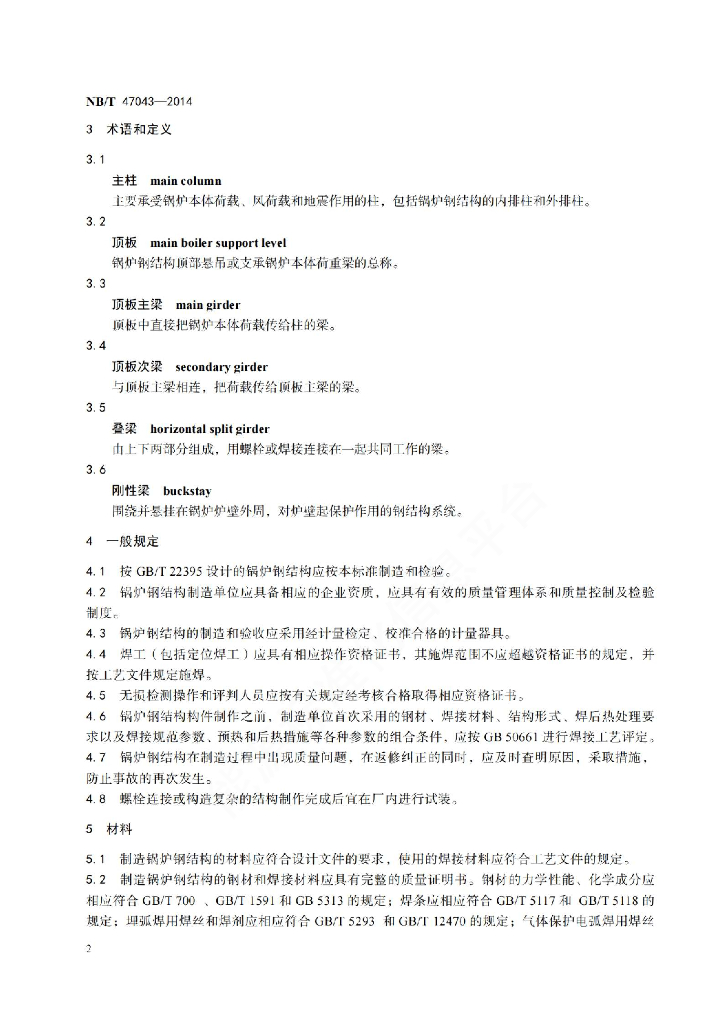 NB/T 47043-2014 锅炉钢结构制造技术规范