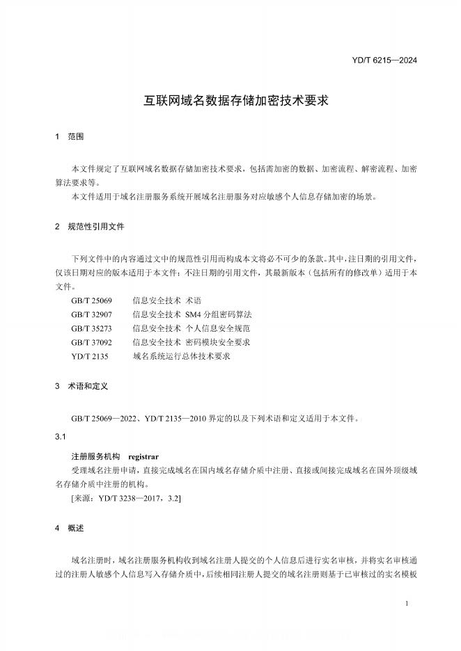 YD/T 6215-2024 互联网域名数据存储加密技术要求