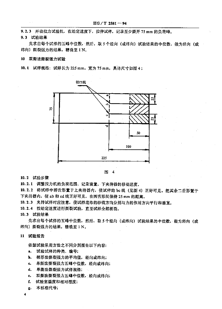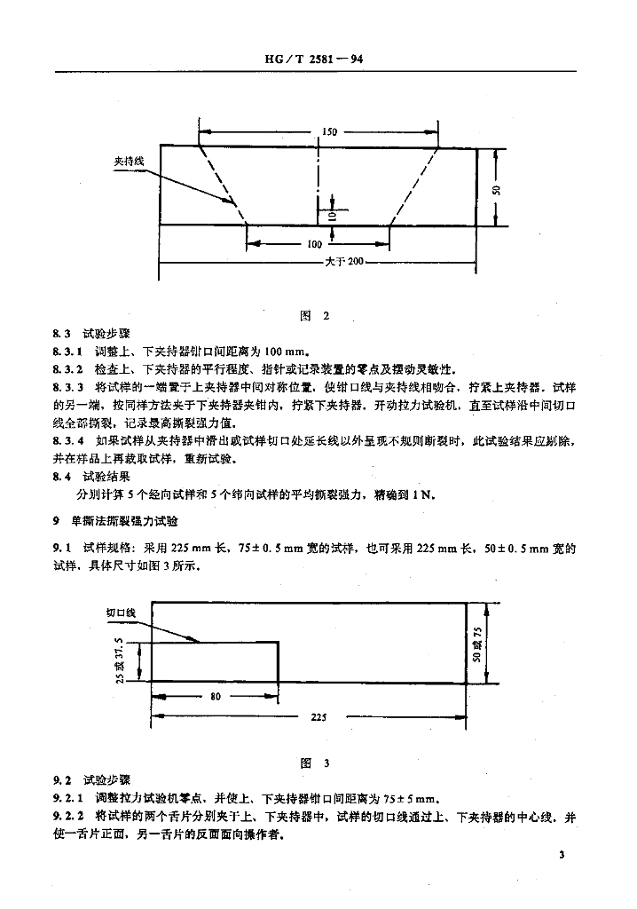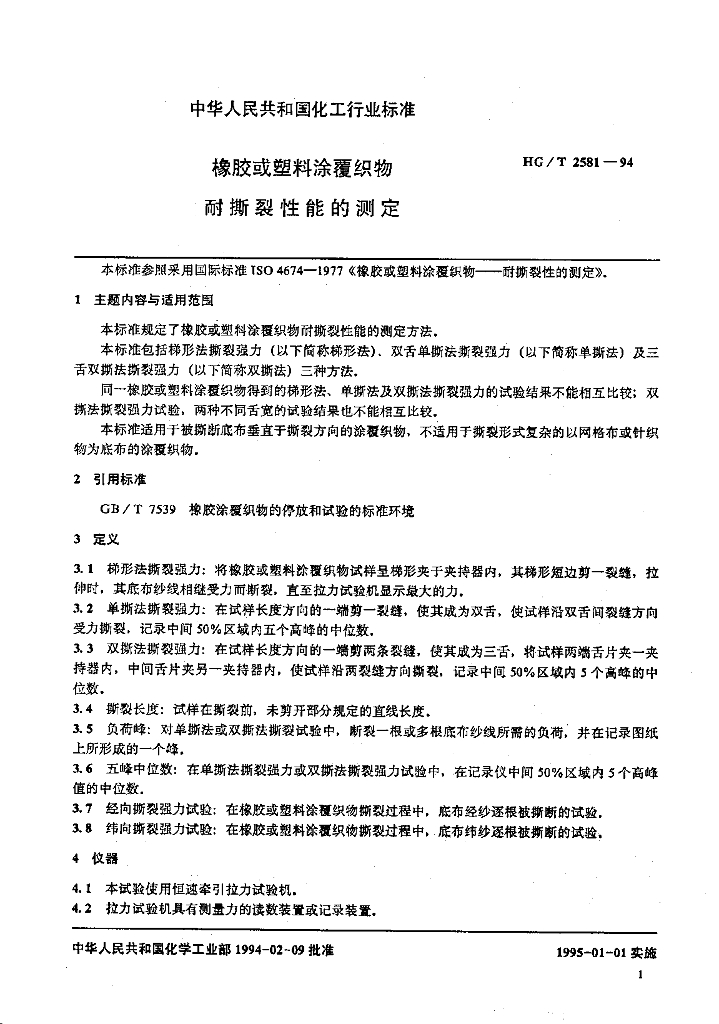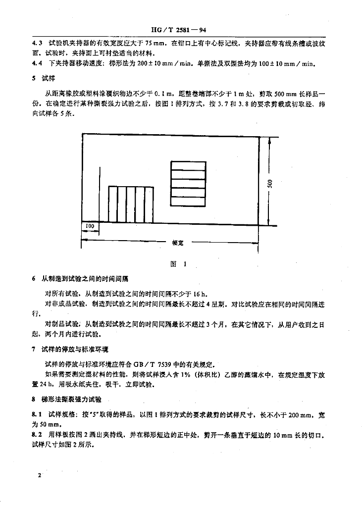 HG/T 2581-1994 橡胶或塑料涂覆织物耐撕裂性能的测定