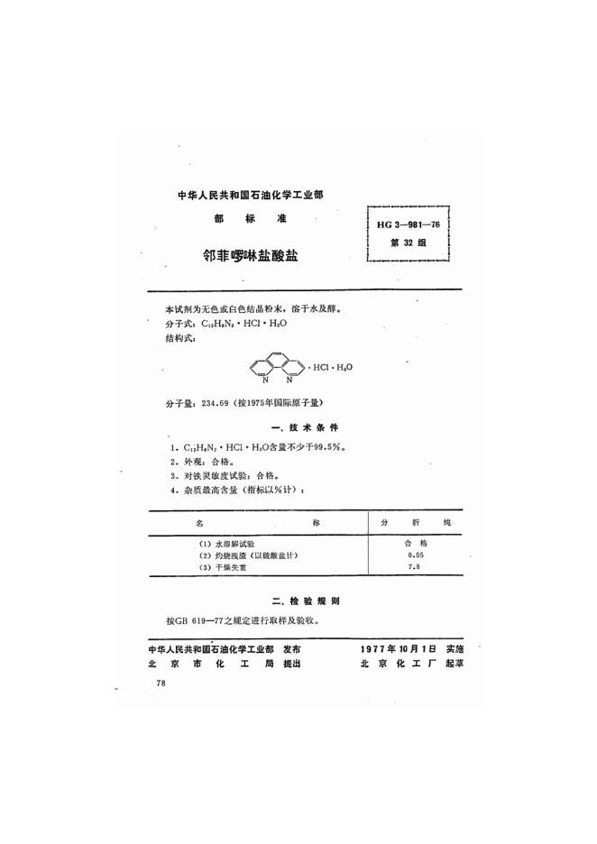 HG 3-981-1976 化学试剂 邻菲啰啉盐酸盐